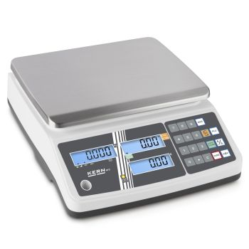 Winkelweegschaal KERN RIB is een betrouwbare prijscalculatieweegschaal, uitgerust met drie afzonderlijke displays voor weergave van gewicht, stuksprijs en totaalprijs. De weegschaal beschikt over 10 directe toetsen voor veelgebruikte artikelen en een geheugen voor in totaal 20 PLU’s (voorgeprogrammeerde prijzen/eenzheden). Met een optioneel oplaadbaar batterijpakket is de RIB ook perfect geschikt voor mobiel gebruik, bijvoorbeeld op markten. Voor het wegen van groenten, fruit of andere producten kan een roestvrijstalen taraschaal als accessoire worden besteld.